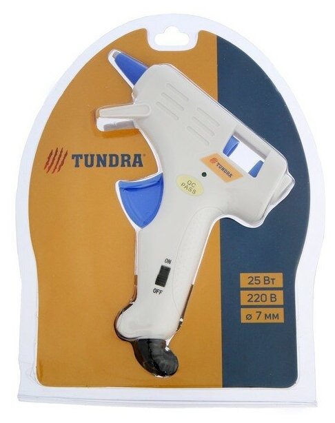 Клеевой пистолет тундра, 25 Вт, 220 В, эргономичная рукоятка, антикапля, шнур 1.3 м, 7 мм 6074034