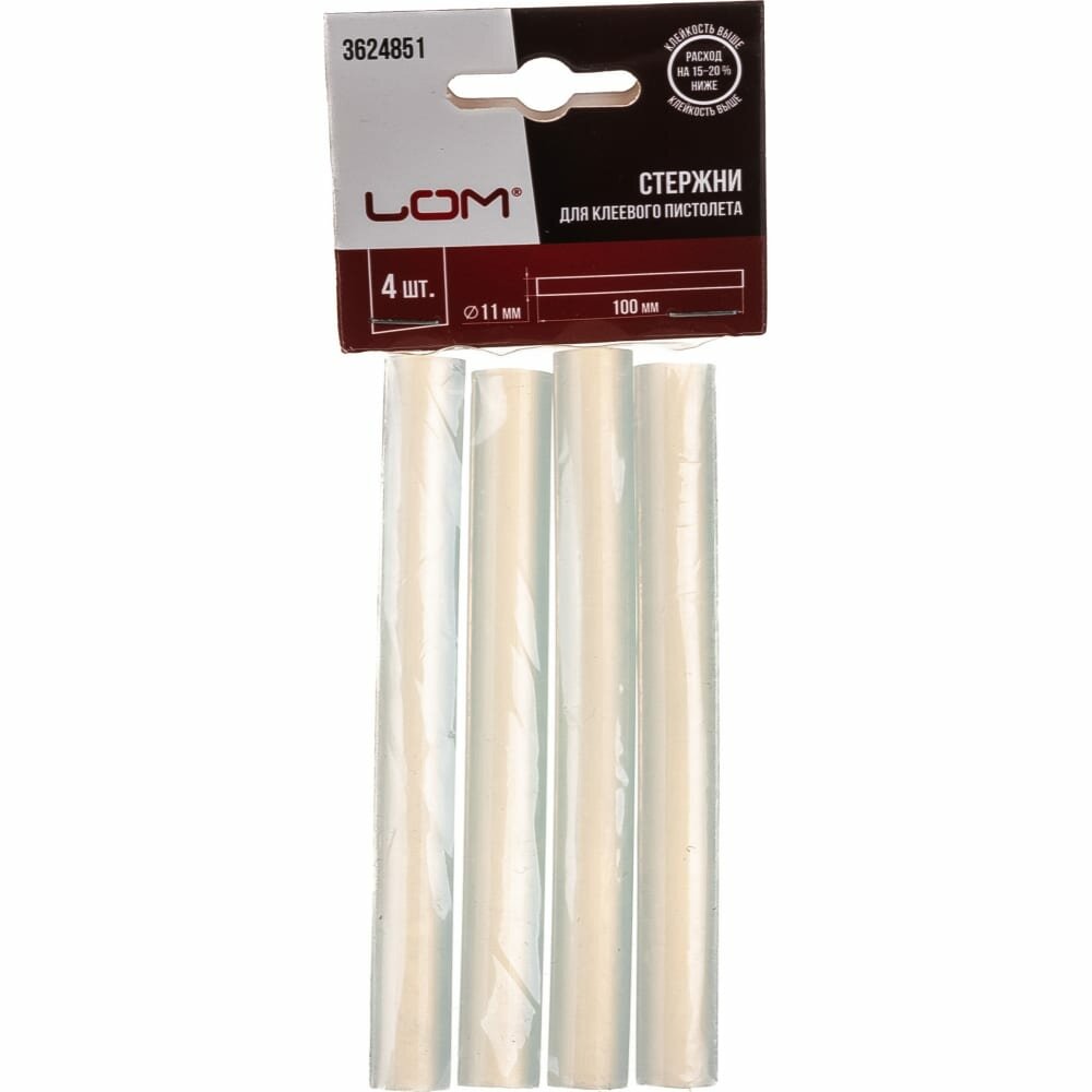 ЛОМ Клеевые стержни LOM, 11 х 100 мм, 4 шт.