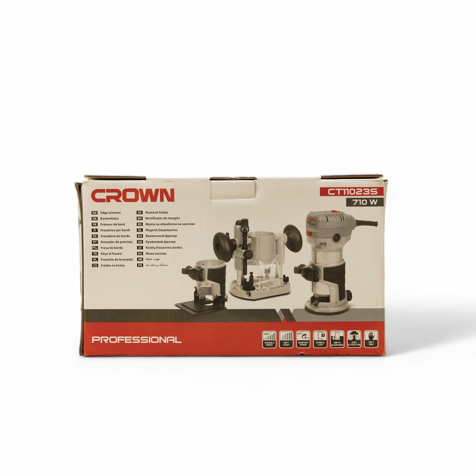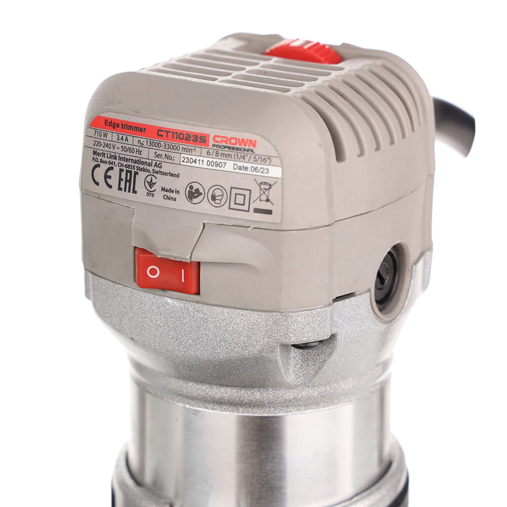 Кромочный фрезер мощность 710 ВТ, сила тока 3,4 А, диаметр цанги 6/8 ММ, CROWN CT11023S