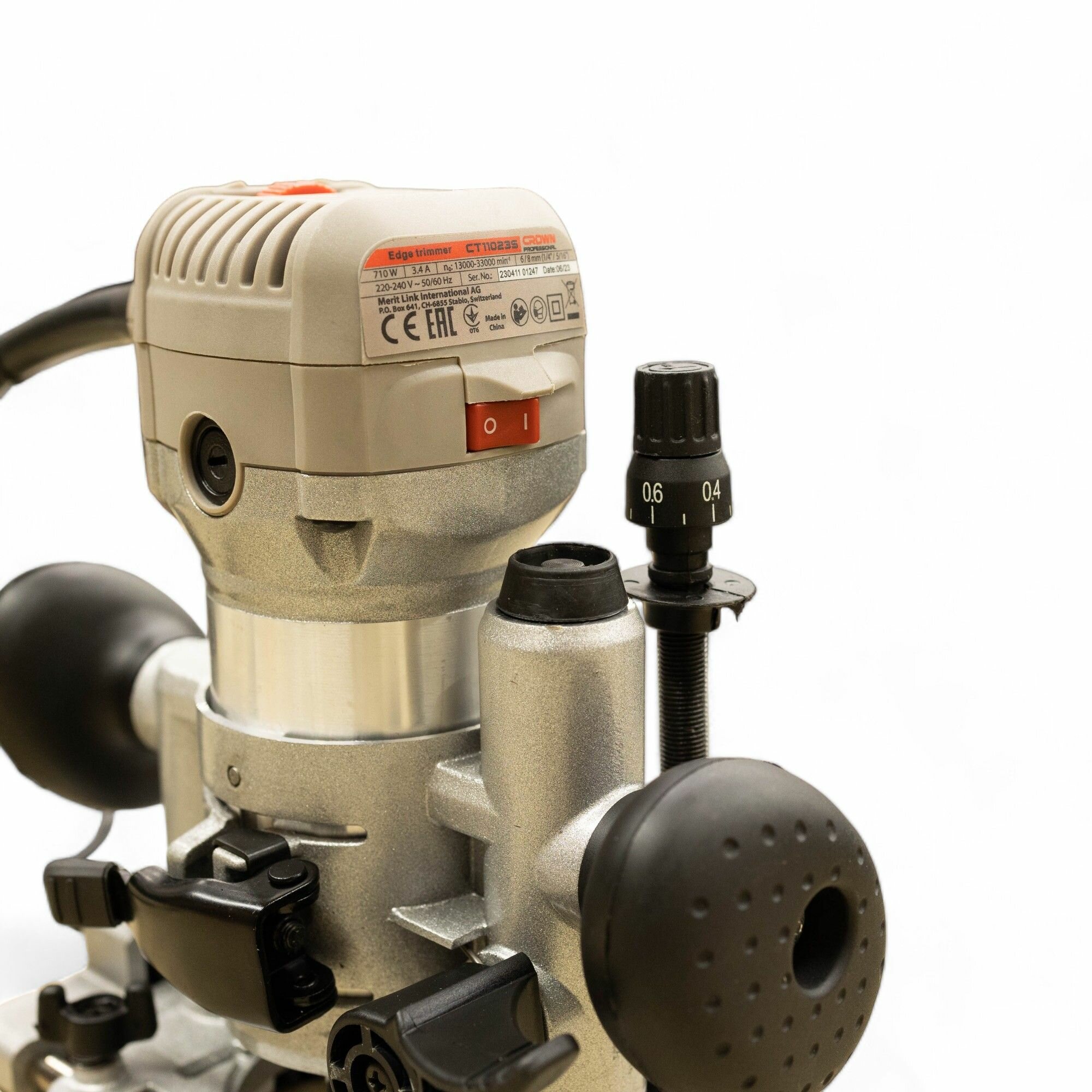 Кромочный фрезер мощность 710 ВТ, сила тока 3,4 А, диаметр цанги 6/8 ММ, CROWN CT11023S, плавный пуск