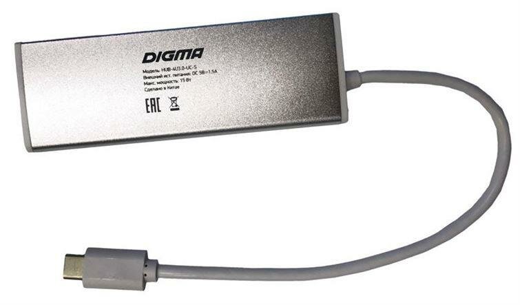 Разветвитель DIGMA USB, 4 порта, серебристый (HUB-4U3.0-UC-S)