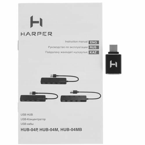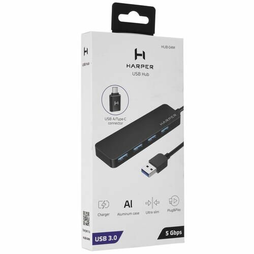 USB Концентратор HARPER HUB-04M / скорость передачи данных до 5 Гб / c, черный