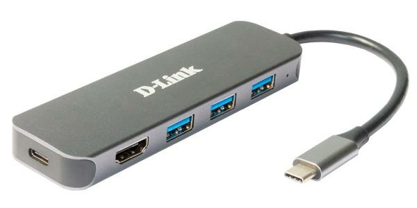 Адаптер многоцелевой D-Link DUB-2333/A1A USB Type C, 3x USB 3.0, 1x Type-C/PD 3.0, 1x HDMI, серебристый