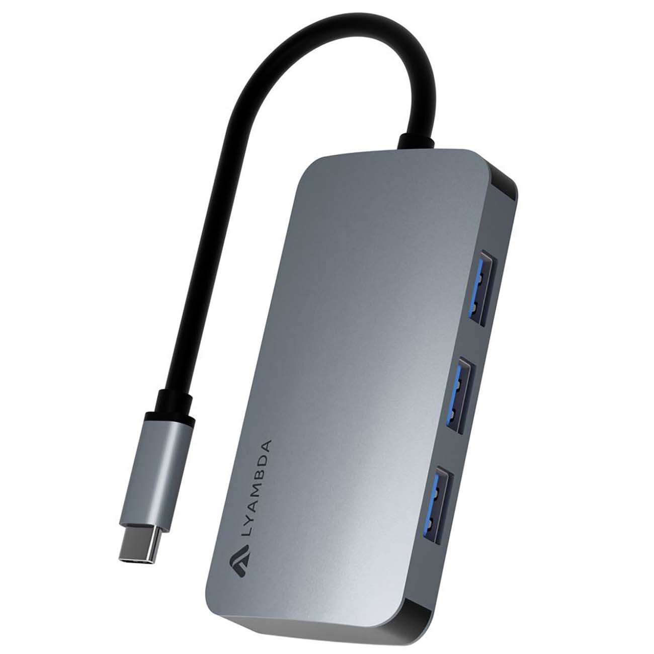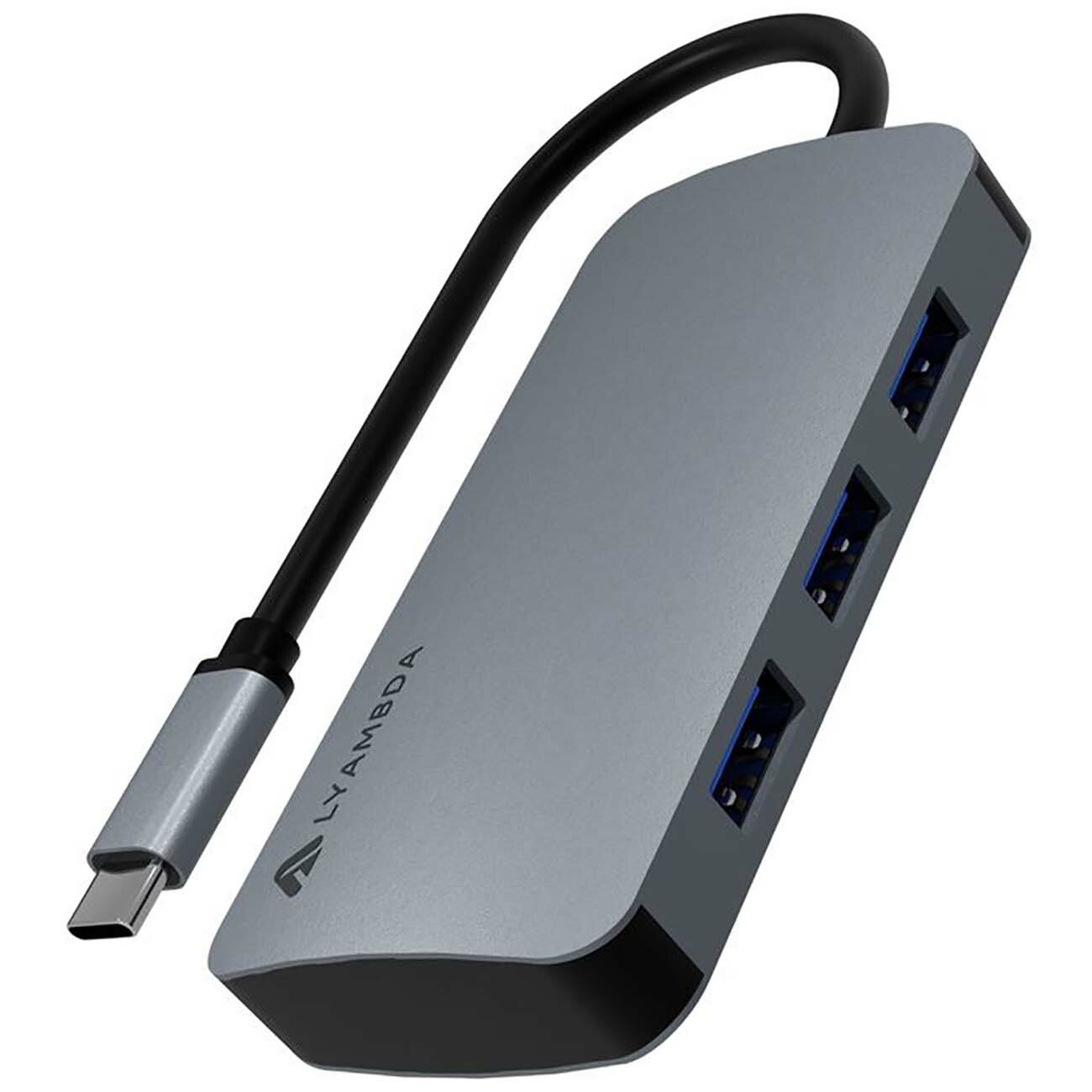 Разветвитель, хаб Type-C USB 3.0 Hub Lyambda Slim LC113 Gray