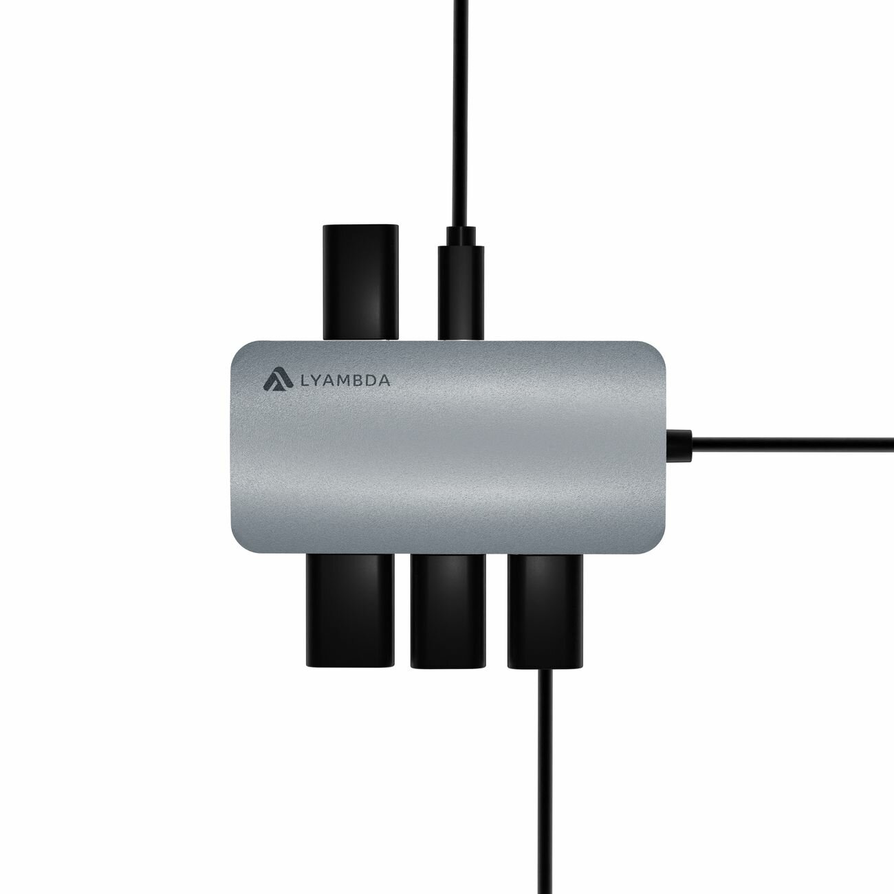 Хаб (разветвитель) LYAMBDA Type-C 5 в 1 USB/PD Hub, LC118, серый