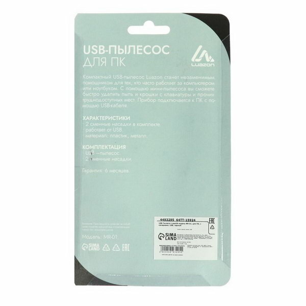 | Дополнительная информация | пылесос для компьютерной техники, питание от USB |