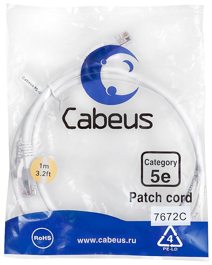 Патч-корд Cabeus PC-UTP-RJ45-Cat.5e-1m-WH-LSZH Кат.5е 1 м белый интересное: