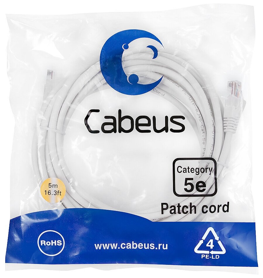 Патч-корд Cabeus PC-UTP-RJ45-Cat.5e-5m-WH-LSZH Кат.5е 5 м белый интересное: