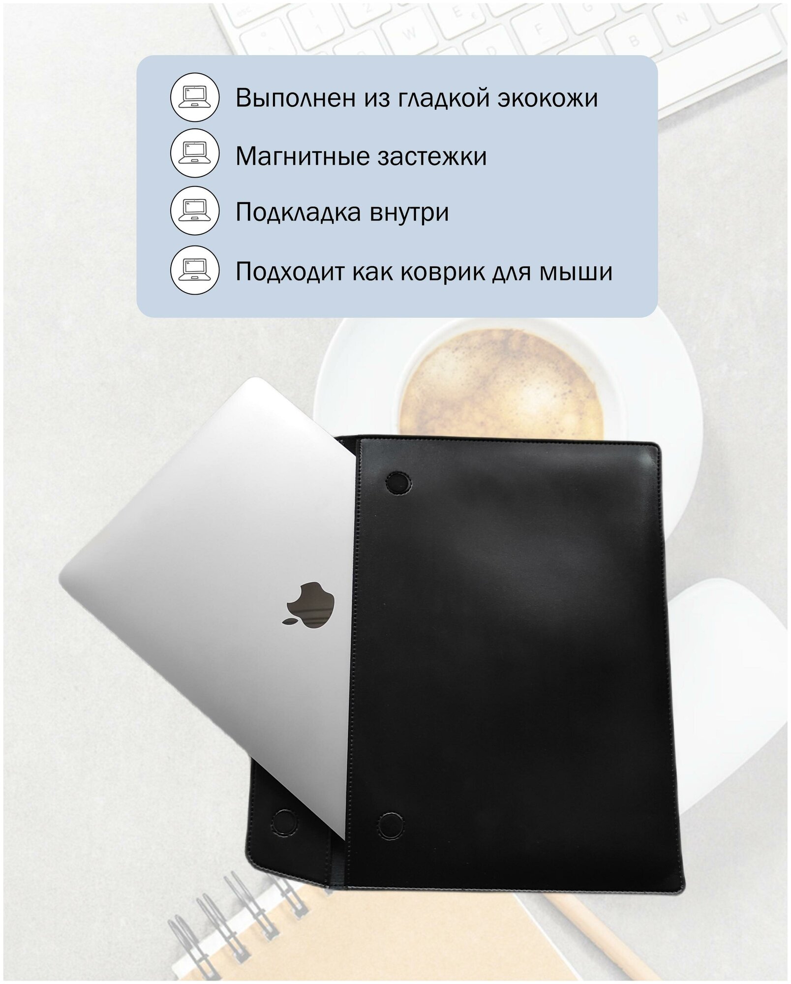 Ниже Вы можете прочитать отзывы на Чехол на для ноутбука, планшета, Mackbook 13 дюймов на магнитной застежке из экокожи черный, ознакомится с подробными характеристиками, посмотреть интересные обзоры и фотографии на Чехол на для ноутбука, планшета, Mackbook 13 дюймов на магнитной застежке из экокожи черный.