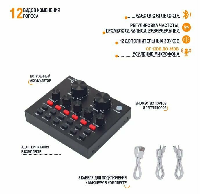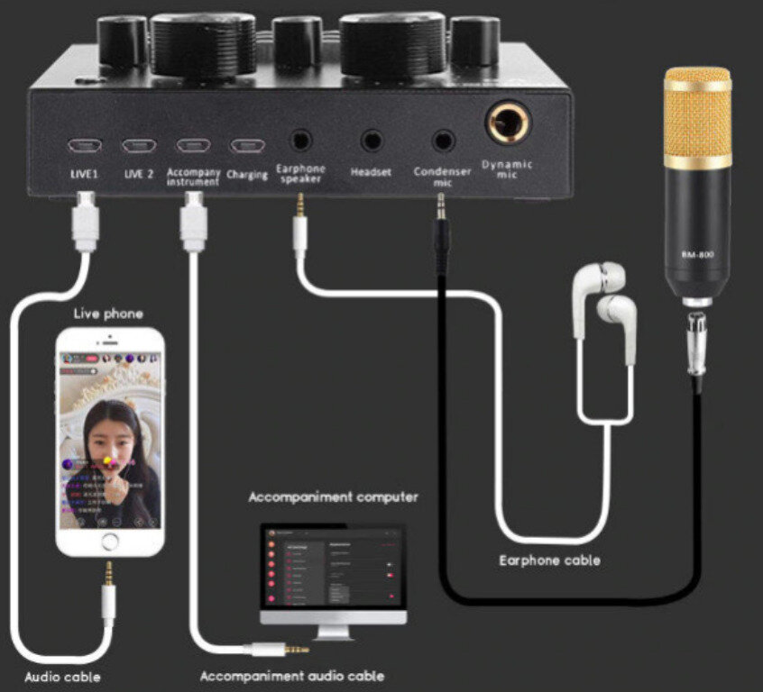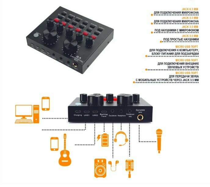 Внешняя звуковая карта микшер для микрофона V8 интересное:
