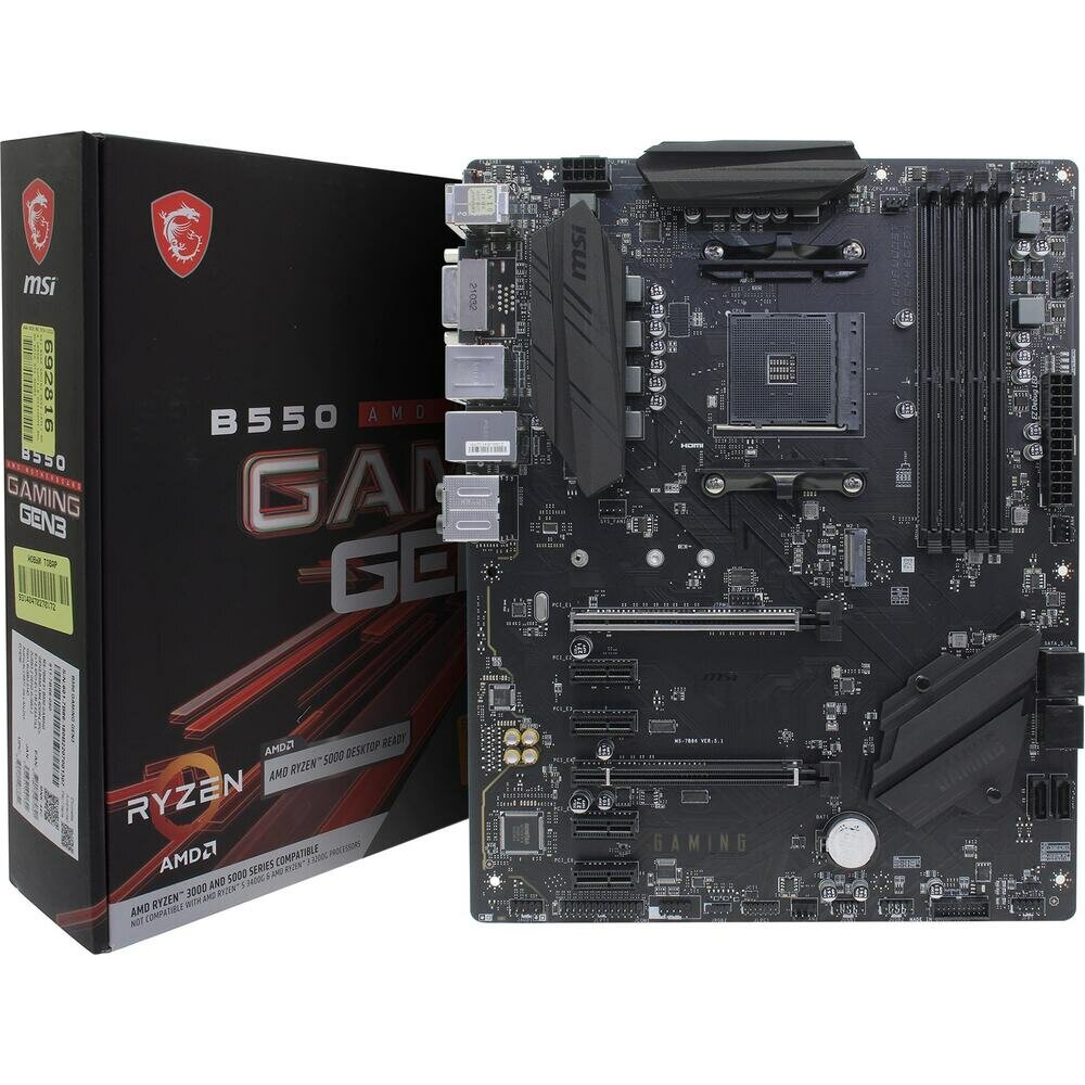 Материнская плата MSI B550 Gaming GEN3 B550 Socket AM4 4xDDR4, 6xSATA3, RAID, 1xM.2, 2xPCI-E16x, 4xUSB3.2, DVI-D, HDMI, Glan, ATX