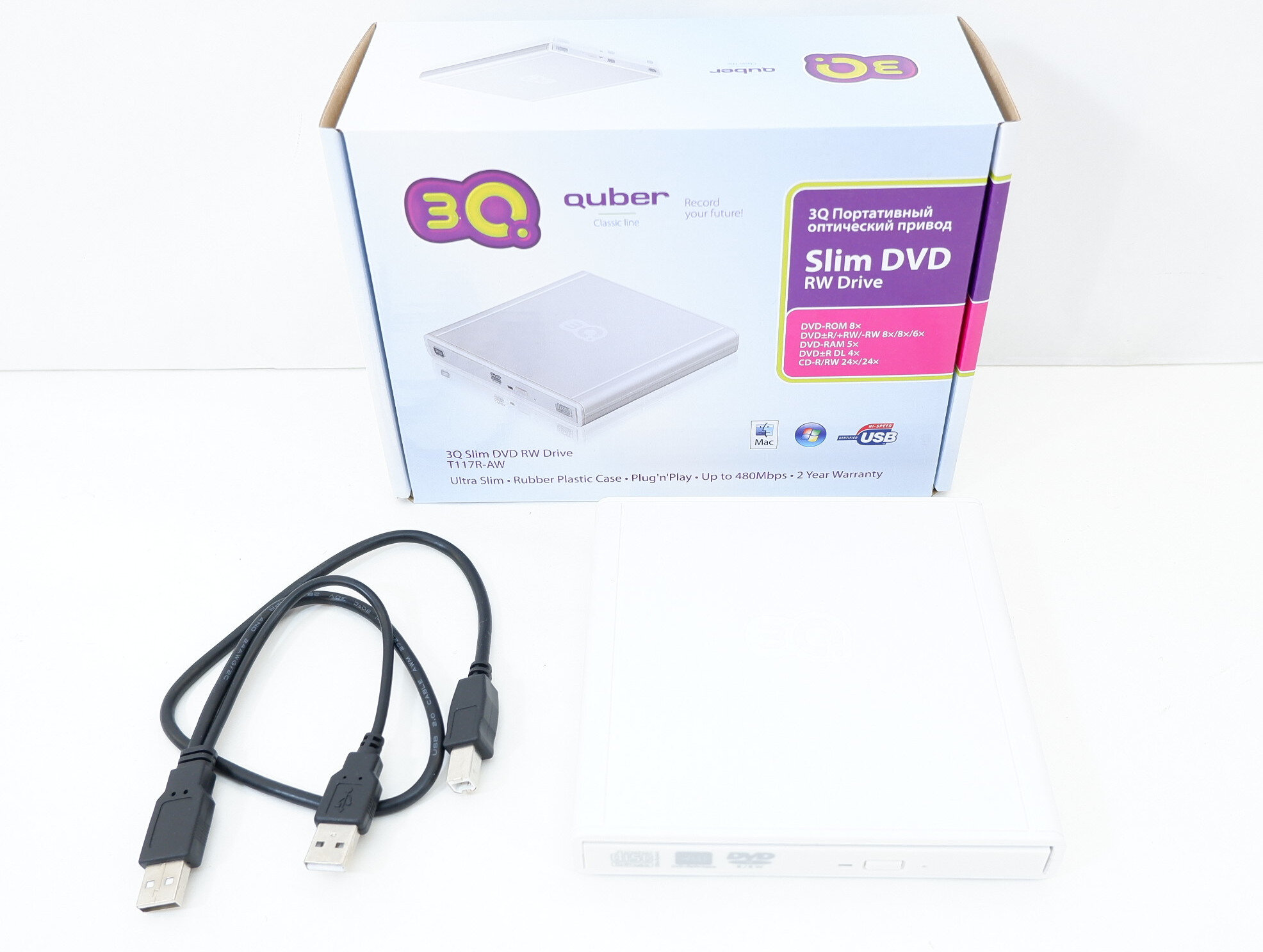 Внешний USB привод DVD-RW 3Q Quber T117R-AW
