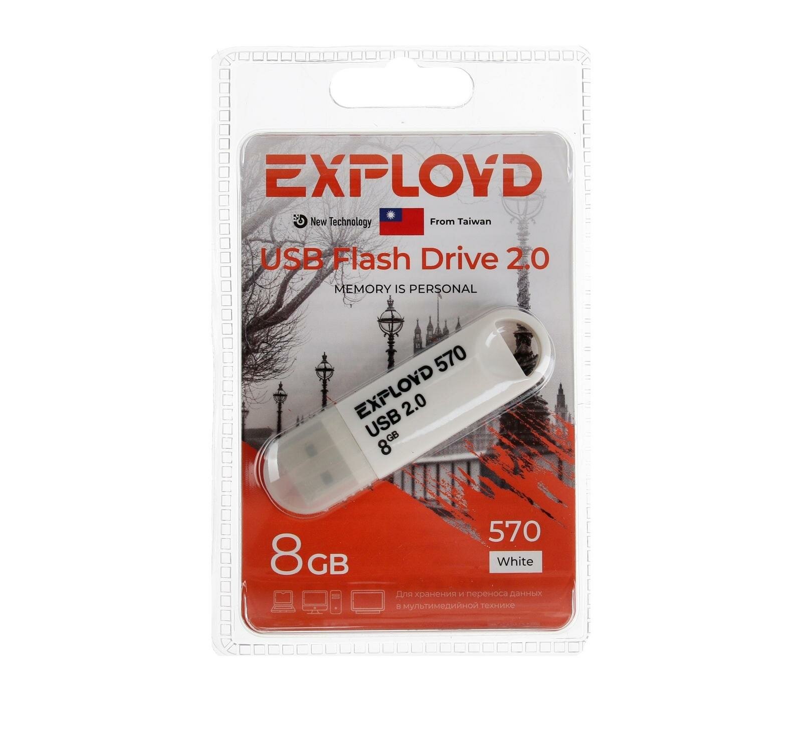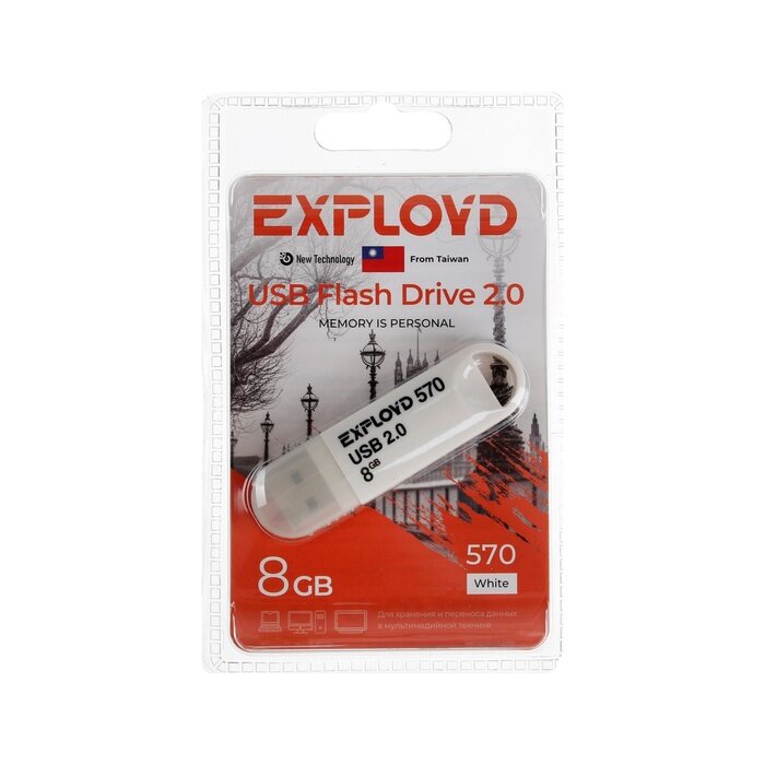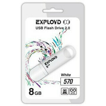 Купить Флешка Exployd 570, 8 Гб, USB2.0, чт до 15 Мб/с, зап до 8 Мб/с, белая