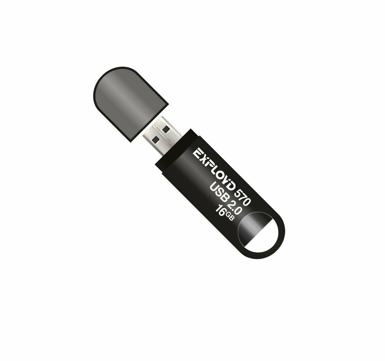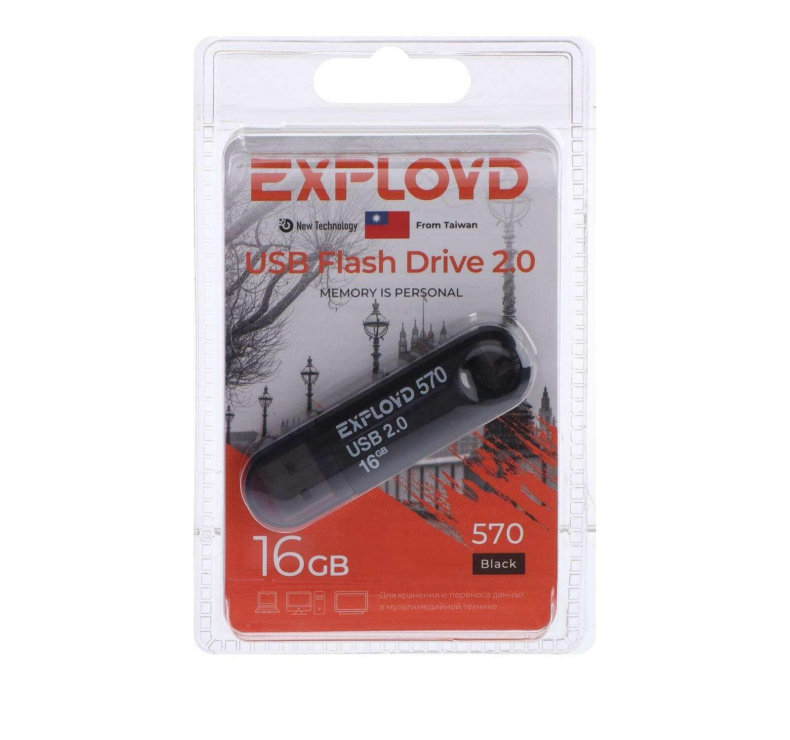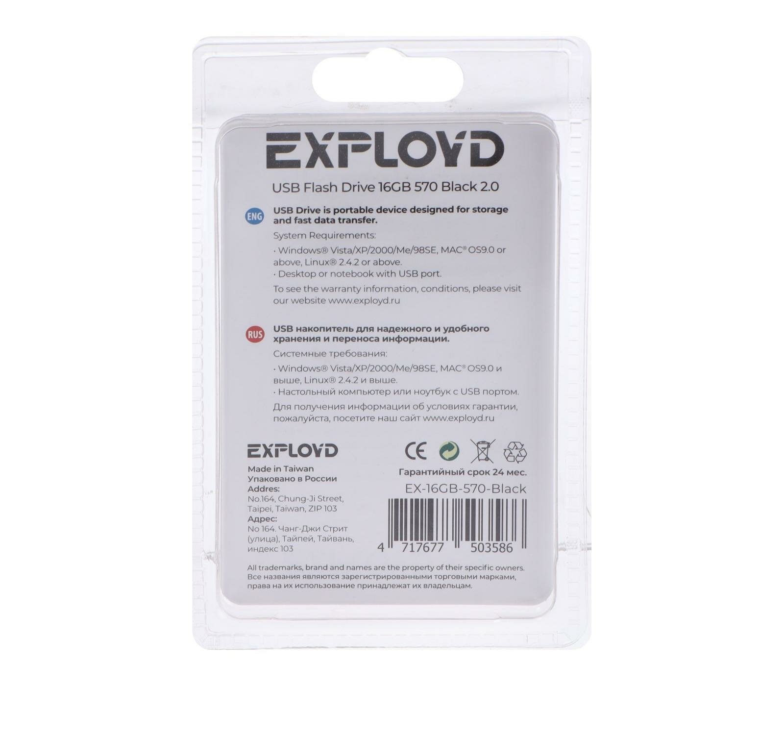 Флеш-накопитель 16Gb Exployd 570, USB 2.0, пластик, чёрный