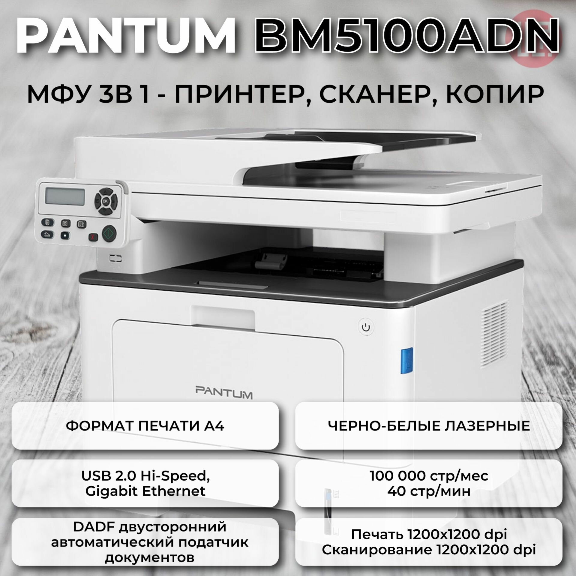 МФУ Pantum BM5100A BM5100ADN A4 Чёрно-белый/печать Лазерная/разрешение печати 1200x1200dpi/разрешение сканирования 600x600dpi