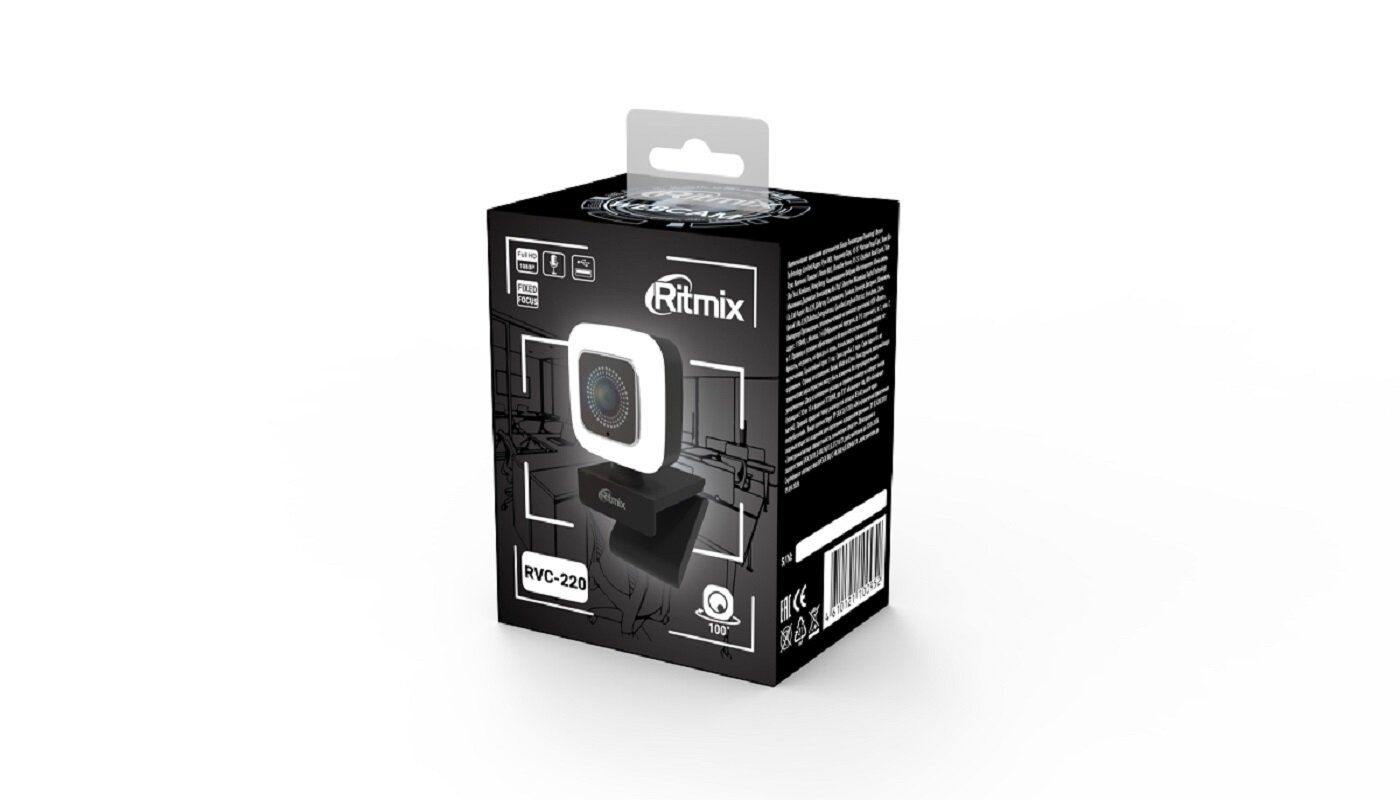 Веб-камера Ritmix RVC-220 Full HD 1080P, встроенный микрофон, подстветка 2 мил пикселей 1920 * 1080. подключение по USB