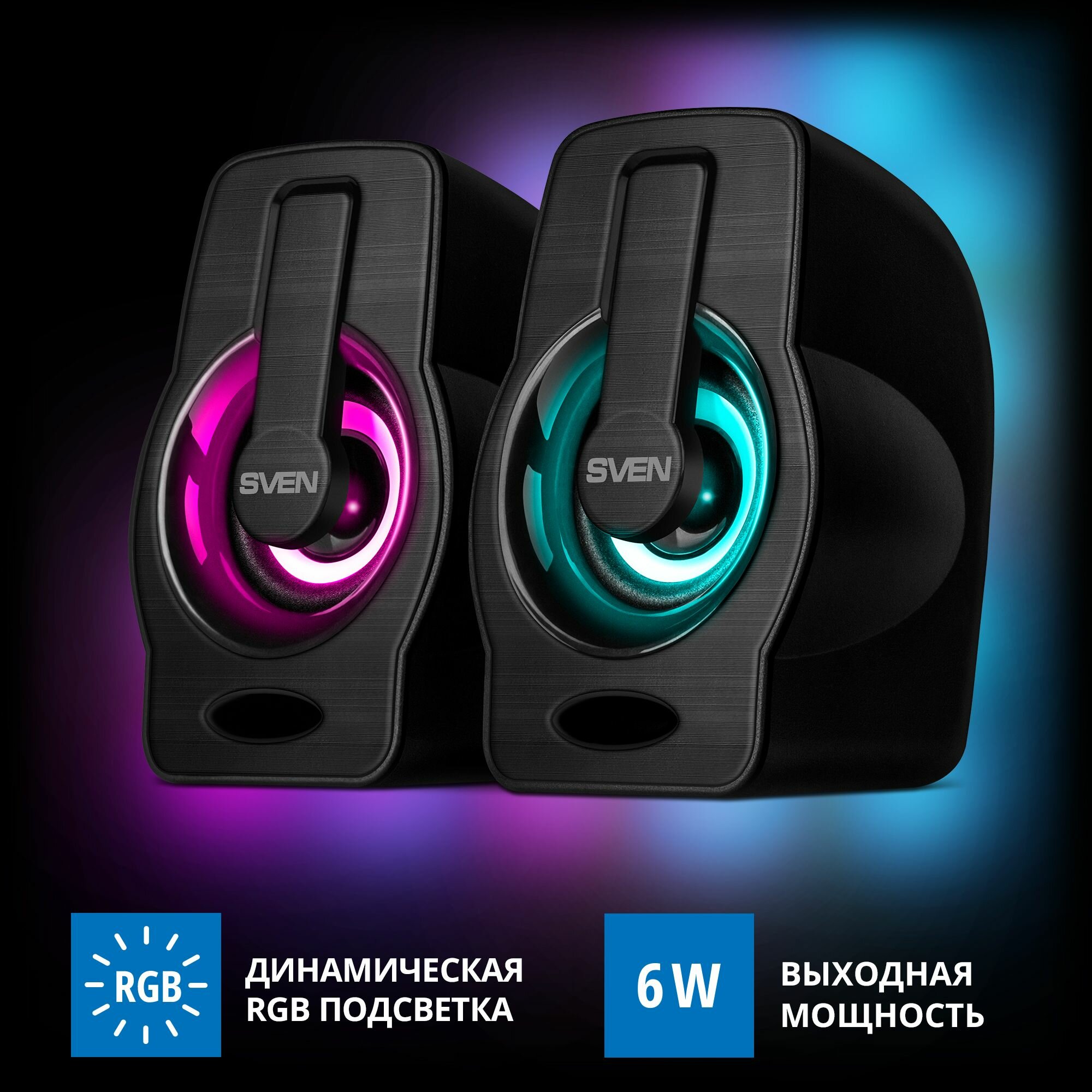 Компьютерная акустика SVEN 255, черный (6 Вт, питание USB, подсветка)