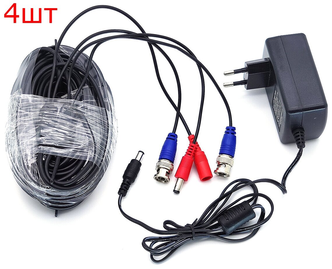 | Подробная комплектация | регистратор, камеры-4шт, кабеля-4шт (18.3м), блок питания (12В/2А)-2шт, мышка |