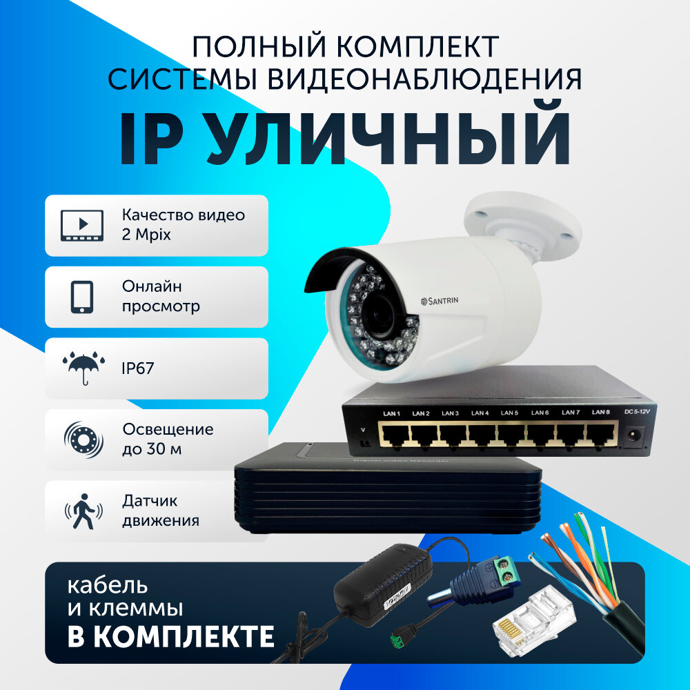 Купить Комплект видеонаблюдения цифровой, готовый комплект IP 1 камера уличная FullHD 2MP