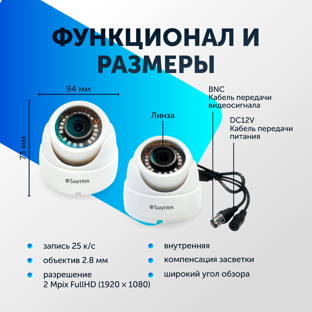 Комплект видеонаблюдения цифровой, готовый комплект AHD TVI CVI CVBS 2 камеры купольных FullHD 2MP