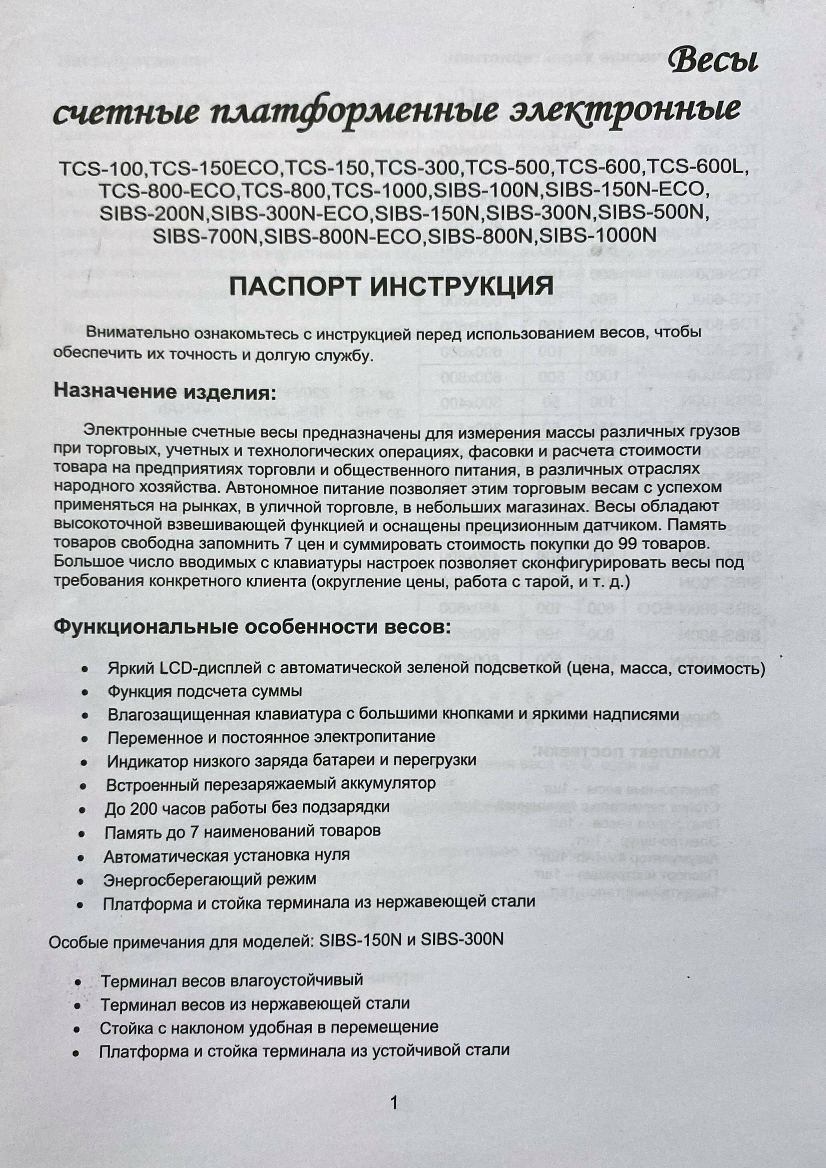 | Тип весов | торговые |