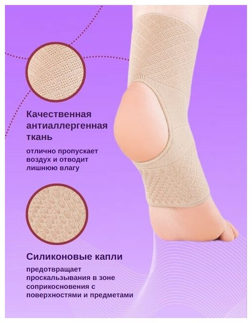 SPORT Голеностоп с открытой пяткой - ортопедический эластичный бандаж с нанесением силикона для спорта и фитнеса (бежевый) интересное: