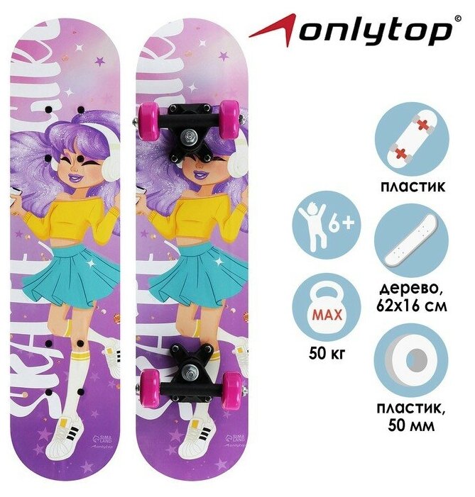 Купить Скейтборд подростковый SKATE GIRL 62 х 16 см, колеса PVC 50 мм, пластиковая подвеска