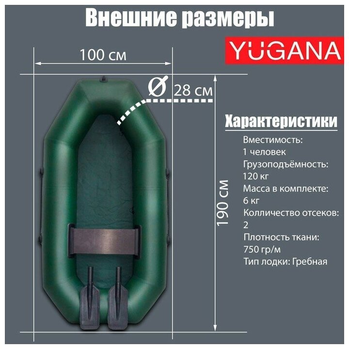 Лодка YUGANA S-190 с гребками, цвет олива интересное: