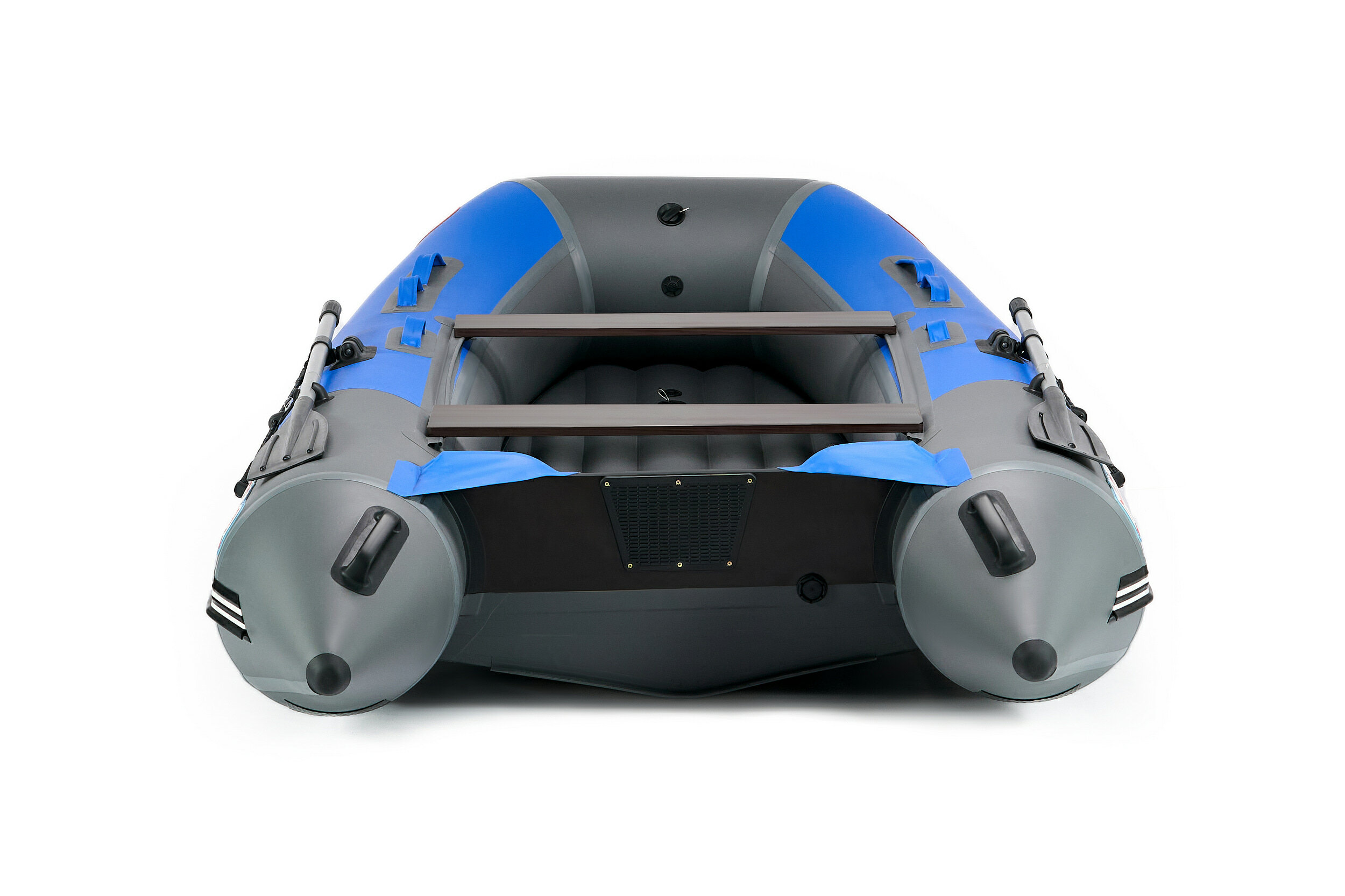 | Бортовое оснащение | якорный рым, леерный трос, весла, уключины, ручки для переноски, клапан для слива воды, насос, ремкомплект, привальный брус |