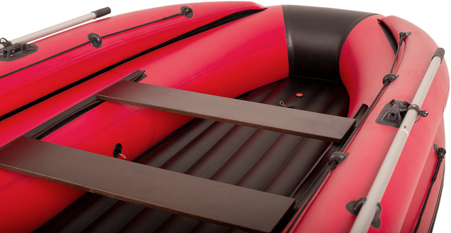 | Бортовое оснащение | леерный трос, весла, уключины, ручки для переноски, клапан для слива воды, насос, ремкомплект, привальный брус |