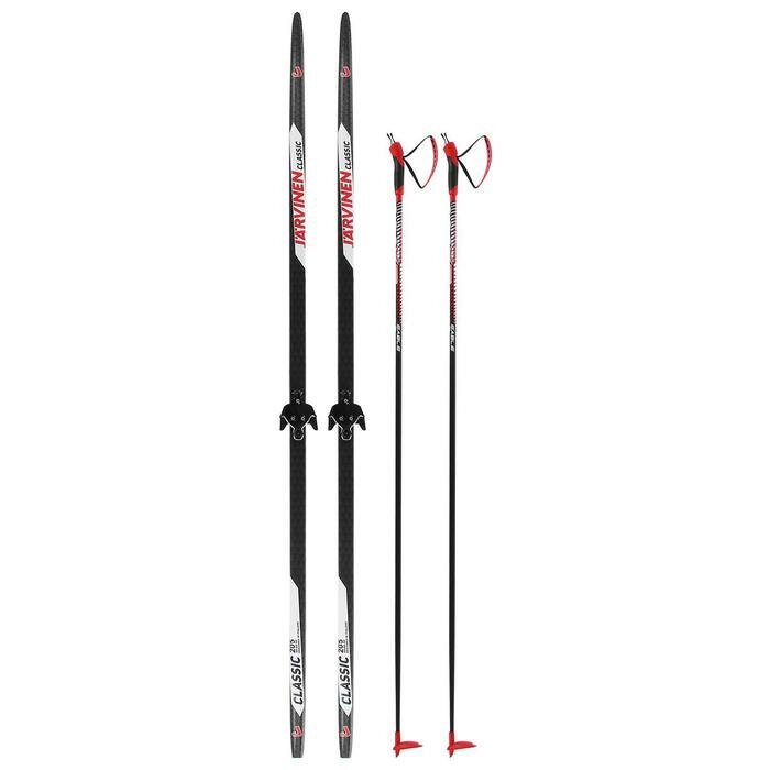 Комплект лыжный: пластиковые лыжи 185 см с насечкой, стеклопластиковые палки 145 см, крепления NNN, цвета микс
