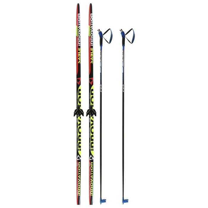 Купить Бренд ЦСТ Комплект лыжный: пластиковые лыжи 205 см без насечек, стеклопластиковые палки 165 см, крепления NN75 мм «бренд ЦСТ», цвета микс