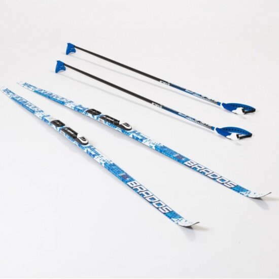 Лыжный комплект с креплениями 75 мм с палками 150 STEP Brados LS Blue