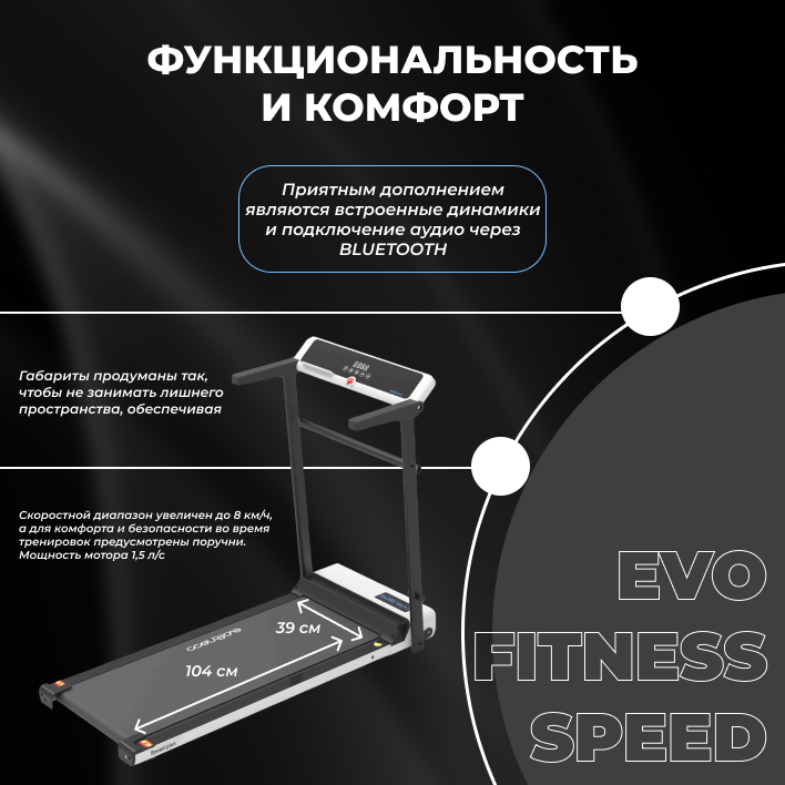 Беговая дорожка электрическая EVO FITNESS Speed Plus интересное: