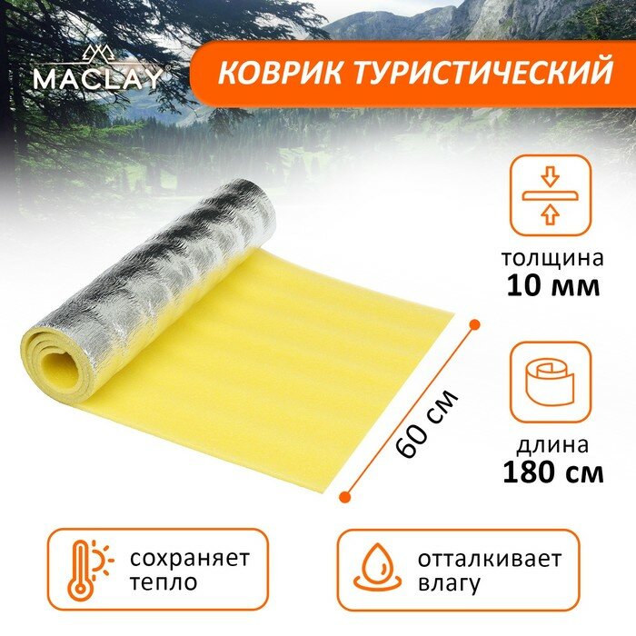 Коврик туристический maclay, с фольгой, 180х60х1 см, цвет жёлтый