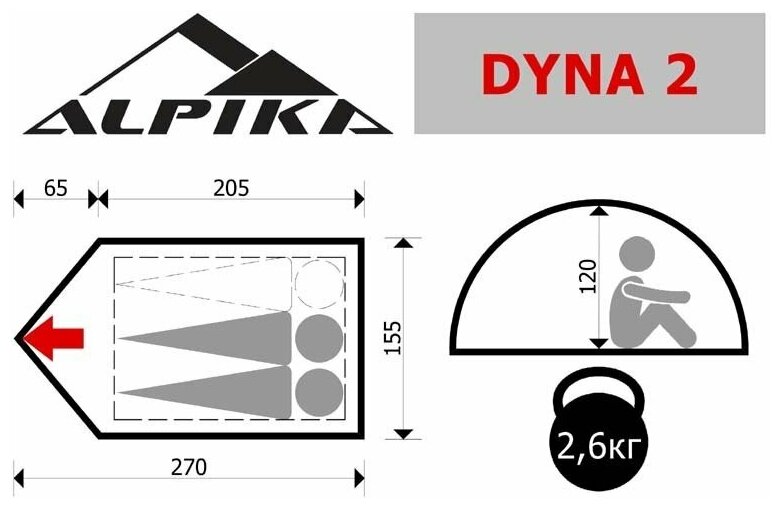 Палатка туристическая ALPIKA Dyna-2, 2-х местная, 205х165х120 см, Polyestr PU 2000 интересное: