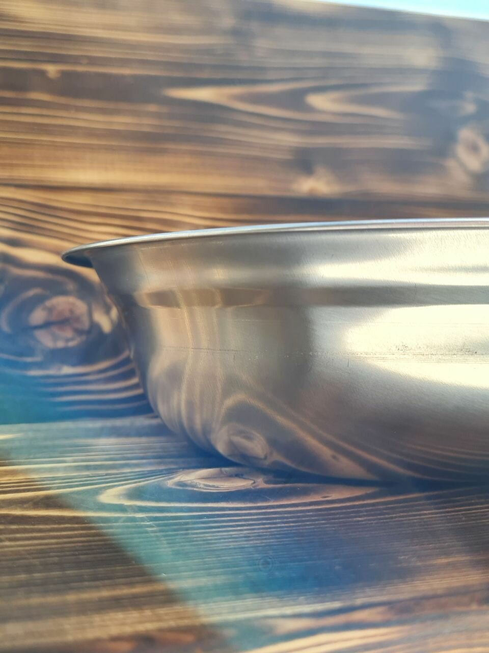 | Минусы: | Не недостаток, но другие мои миски отполированы более "зеркально". |