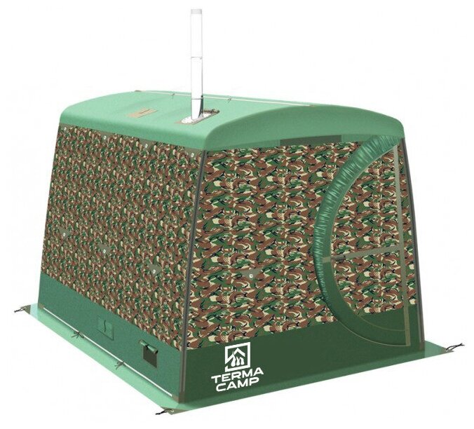 | Дополнительная информация | Наличие внутри палатки отстегивающейся быстросъёмной перегородки на молнии, которая "лёгким движением руки" )) позволяет превратить одно-объёмную палатку в мобильную баню с небольшим тамбуром для отдыха или вещей. В режиме "мобильная баня" формируется просторная парилка размером 210*200 см. в двух последних пролётах палатки и тамбур 210*100 см. на входе. Перегородка, разделяющая тамбур и парилку, так же оснащена дверным узлом распашного типа. Мобильная баня Терма-3 имеет систему проветривания в виде вентиляционных окон в верхней части фасадной и тыльной стенок, которые оснащены москитной сеткой. Вентиляционные окна могут быть закрыты изнутри палатки защитной шторкой, а с наружной части над ними имеется дождевой козырёк. Мобильная баня Терма-3 имеет в штатной комплектации два окна по одному на правой и левой стенке в последней от входа секции палатки. Окна выполнены из прозрачного морозостойкого ПВХ-материала и имеют размер 32*62 см. Внутри палатки окна можно закрыть шторками. |