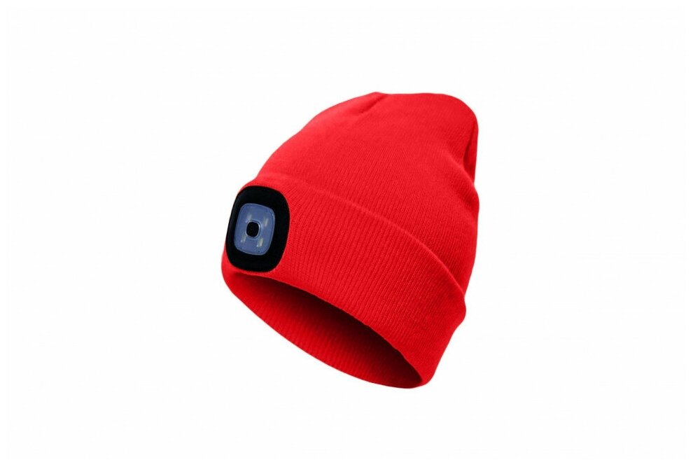 Шапка с фонариком 215х205х5 красн. (фонарь 66х50х15мм снимается; аккум. 3.7В/200мА.ч) 3 режима свечения Космос KOCHat_red