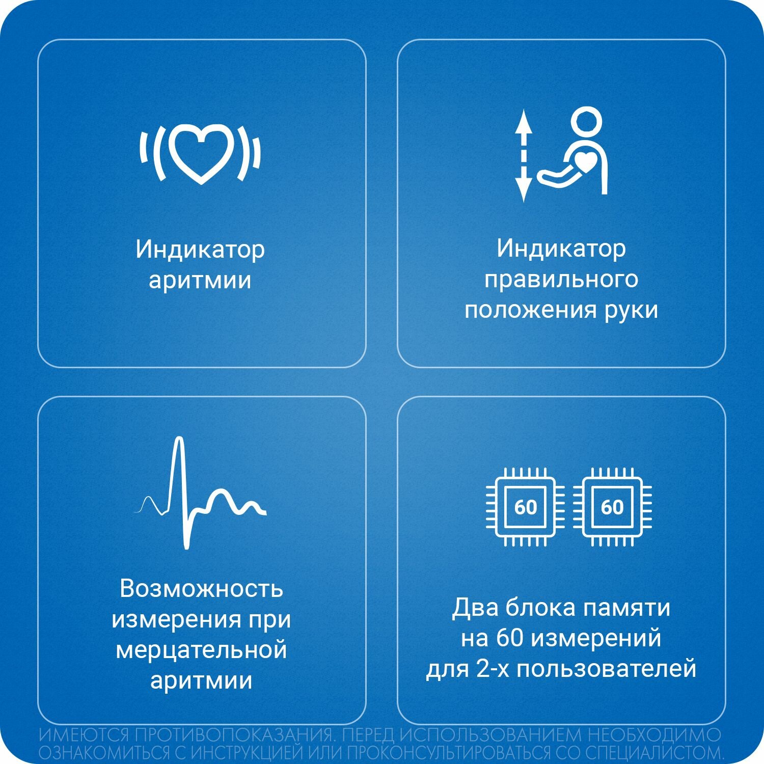| Индикация | индикатор аритмии / индикатор правильной фиксации манжеты |