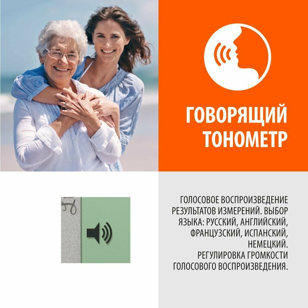 | Функции | голосовое оповещение / измерение пульса / режим нескольких измерений |