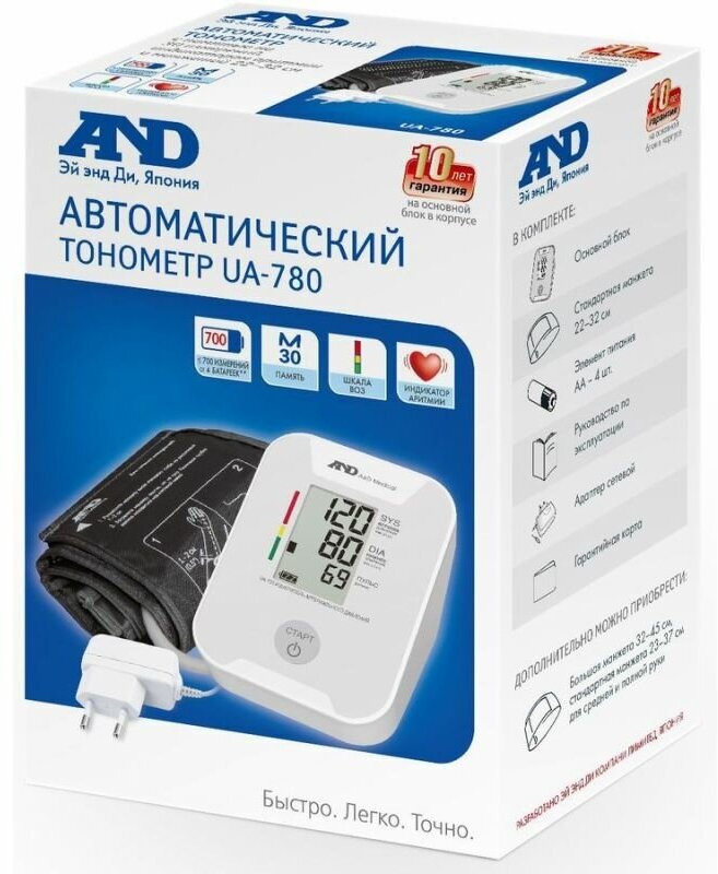 | Комплектация | - электронный блок с манжетой; - футляр для хранения прибора; - комплект элементов питания; - руководство по эксплуатации; - гарантийный талон. |