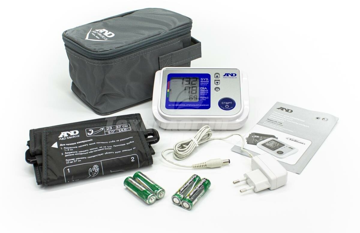 | Комплектация | - основной блок в корпусе; - манжета стандартная; - трубка соединительная; - коннектор; - чехол для хранения; - элементы питания (AA, R6) - 4 шт.; - адаптер сетевой; - руководство по эксплуатации; - гарантийная карта; - коробка упаковочная картонная. |