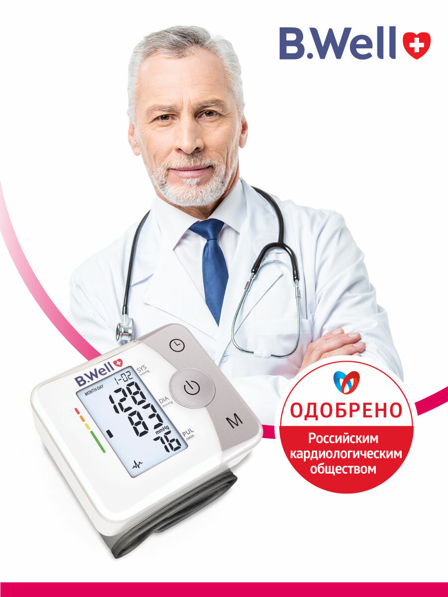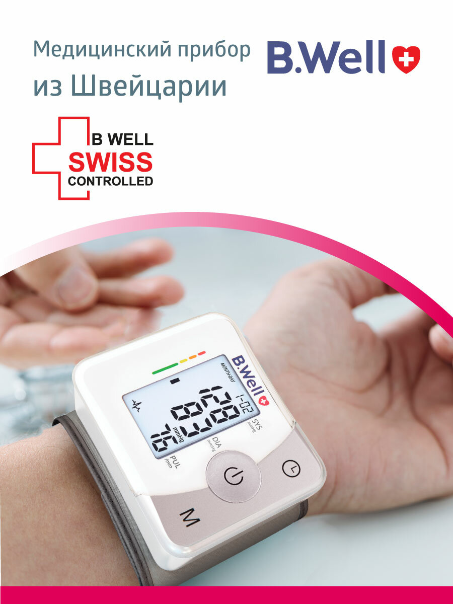Тонометр B.Well MED-57 запястный, подсветка дисплея, бережное измерение Intellect Active, память на 30 измерений, дата и время интересное: