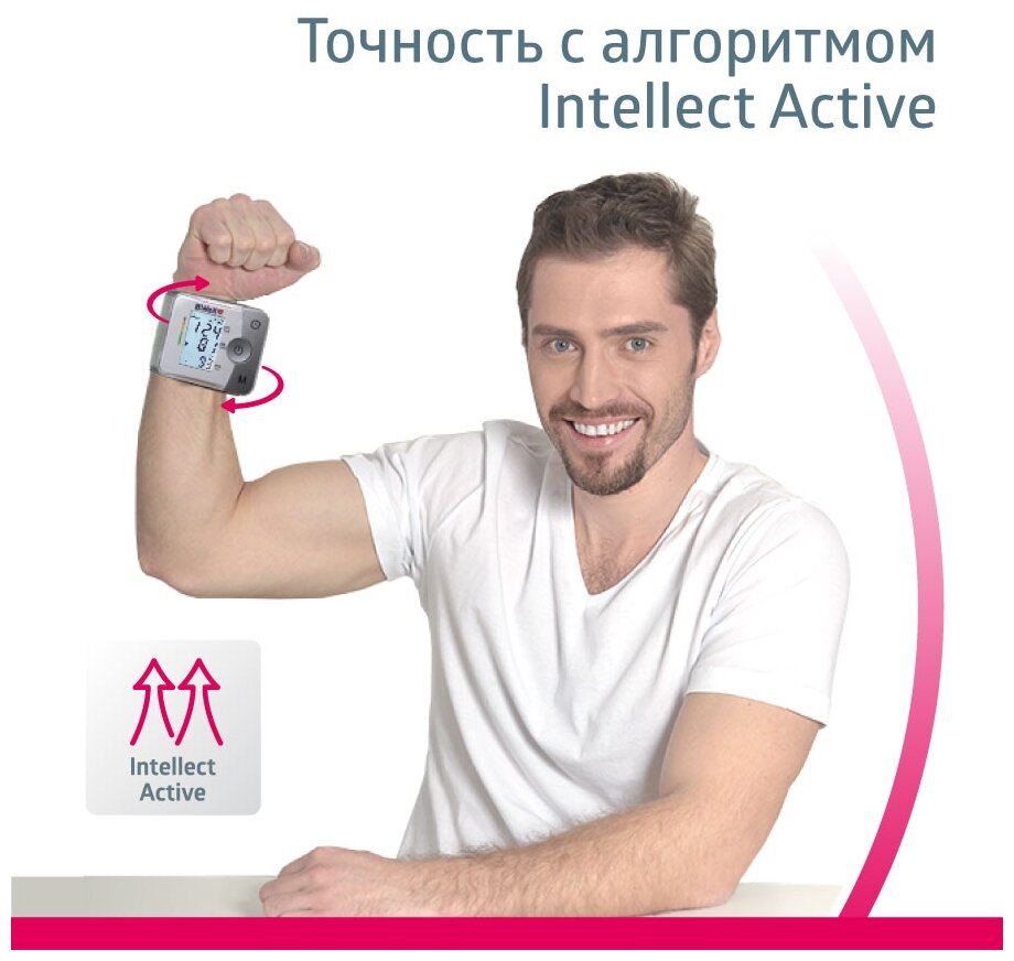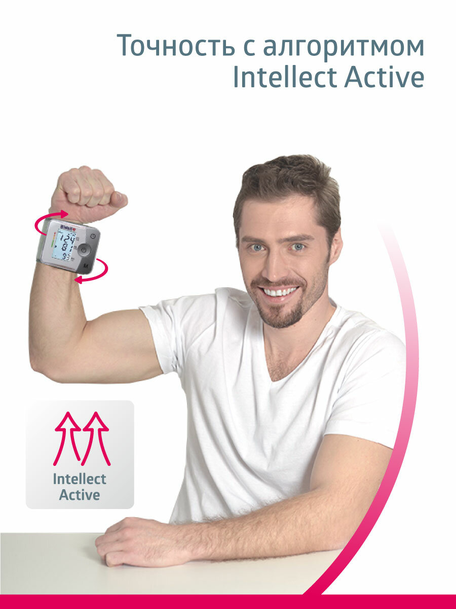 Тонометр B.Well MED-57 запястный, подсветка дисплея, бережное измерение Intellect Active, память на 30 измерений, дата и время