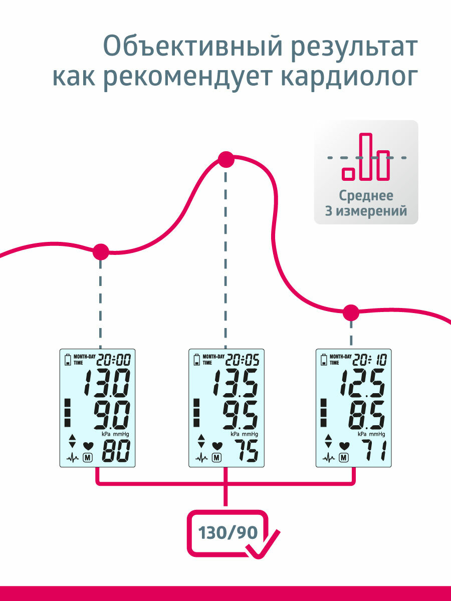 | Плюсы: | На запястье, удобно с подсветкой, дневник на месяц ежедневных измерений. |