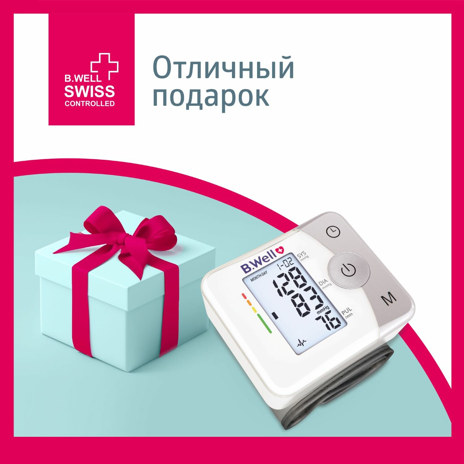 Тонометр B.Well MED-57 на запястье, подсветка дисплея, дневник измерений, индикатором аритмии, шкала