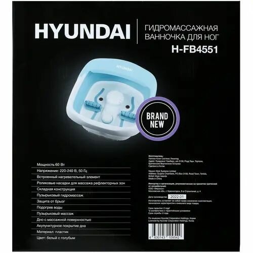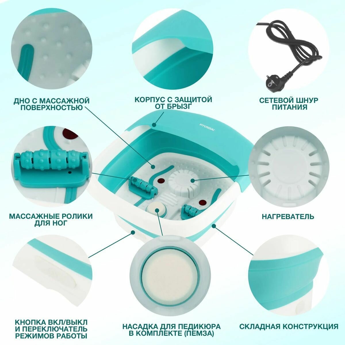 Гидромассажная ванночка для ног Hyundai H-FB4551, белый, бирюзовый интересное: