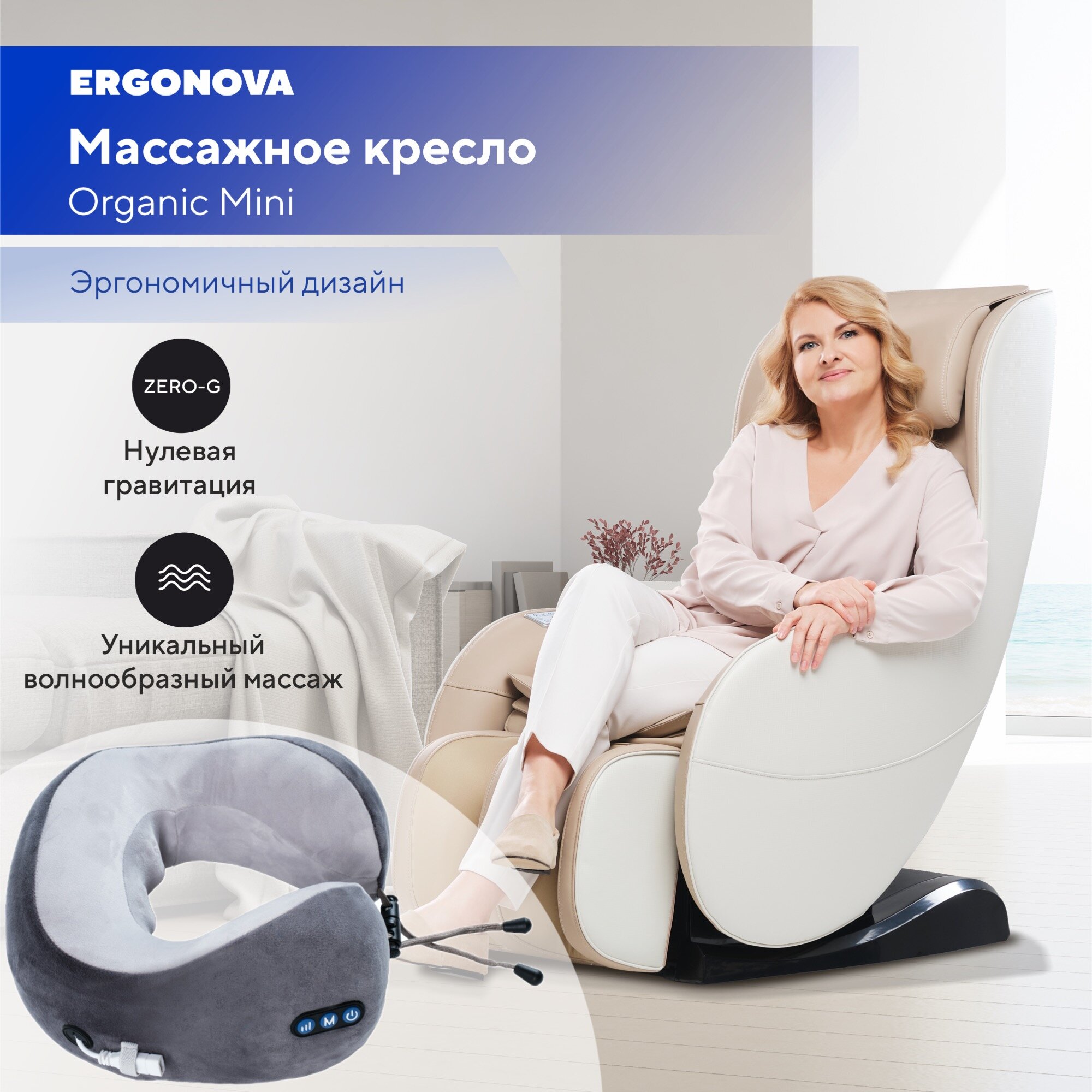 Массажное кресло Ergonova Organic Mini Beige интересное: