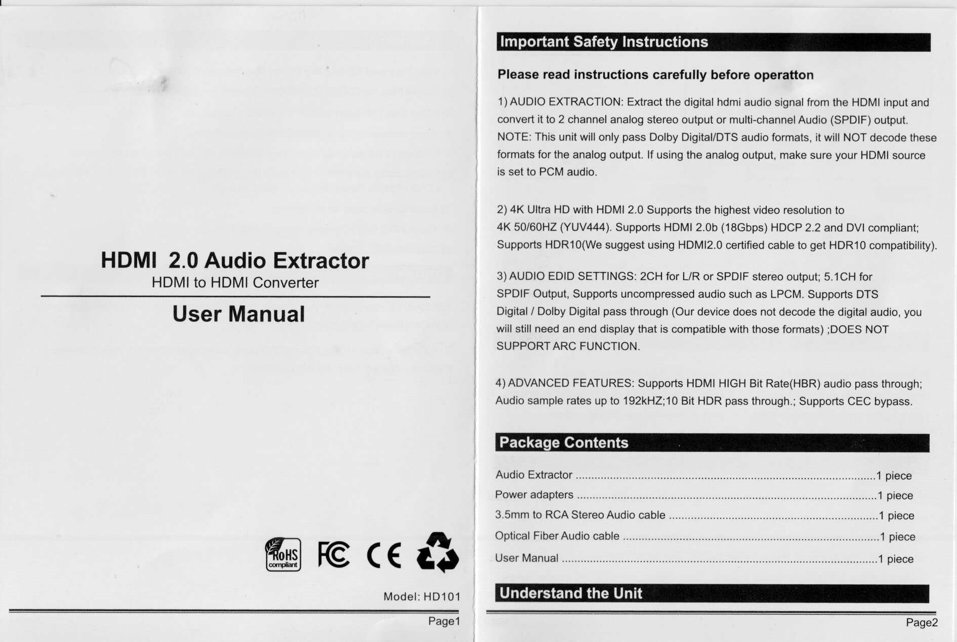 Купить Конвертер HDMI в HDMI с выводом звука (SPDIF и R/L)